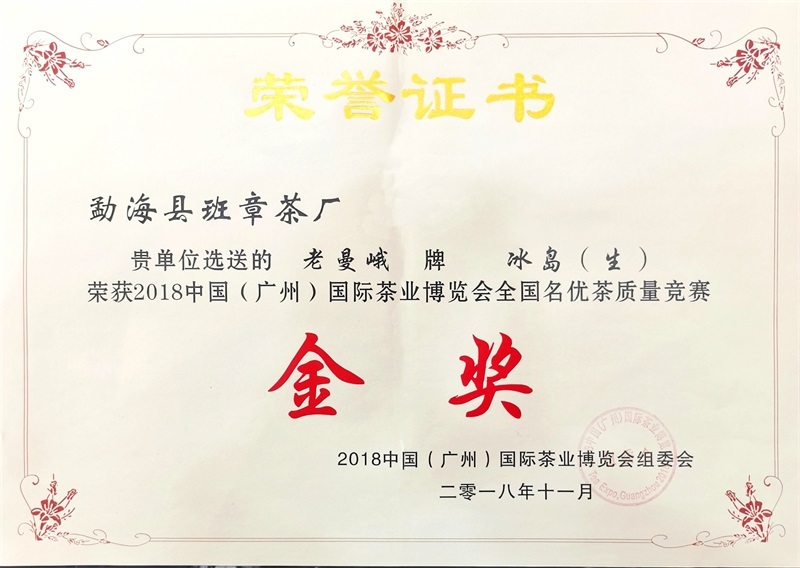 冰岛(生)荣获2018中国(广州)国际茶业博览会全国名优茶质量竞赛金奖